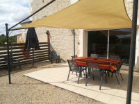 Un gîte de 120 mètres carrés attenant à la maison côté grange est à disposition, il comprend, un rez de chaussée avec terrasse fermée par une barrière et un étage.
